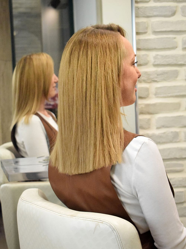 Klasično izdanje “na ravno” koje se također može malo korigirati podizanjem u ponytail s laganim valovima, ovisno o želji klijentice.