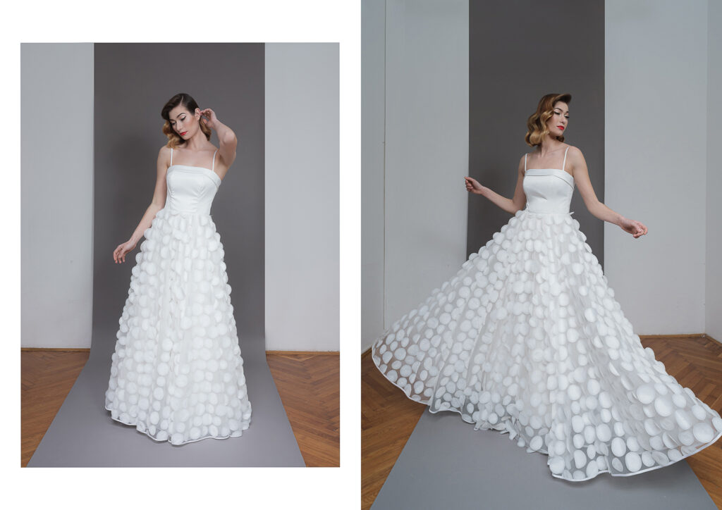 „Moda je uvijek odraz vremena u kojem živimo, a istovremeno i bijeg u svijet kreacije i mašte koji nam svakodnevicu čini boljim i ljepšim mjestom. I dok moje klijentice s nestrpljenjem iščekuju prilike za raskošna izdanja, one se i dalje žele osjećati posebno, romantično i elegantno na dan svojeg vjenčanja, ali u nekim novim okolnostima u kojima je naglasak na profinjenosti i svečanosti trenutka, a ne na raskošnom slavlju i grandioznosti. Zato je naša nova kolekcija minimalistička u raskošnosti, ali jedinstvena i posebna po profinjenosti i romantičnosti“, kazao je dizajner Ivica Skoko. I zaista, u novoj kolekciji, njegove prepoznatljive krinoline, svedene su na elegantne haljine A kroja, naglašene u struku, midi dužine i prikladne za manja vjenčanja kao i romantične proslave na otvorenom. Otvorena ramena ili nježni til daju dozu romantičnog a iako je od ranije poznat po vjenčanicama u bojama, od puderaste do nježnih nijansi bež ili roze, u ovoj sezoni naglasak je na bijeloj boji. „Kad sve izlazi iz okvira uobičajenog i klasičnog, zadržali smo boju vjenčanice u okvirima tradicije. Zato je ona ove sezone kraća ili više minimalistička, ali mora biti bijela“, dodaje dizajner.