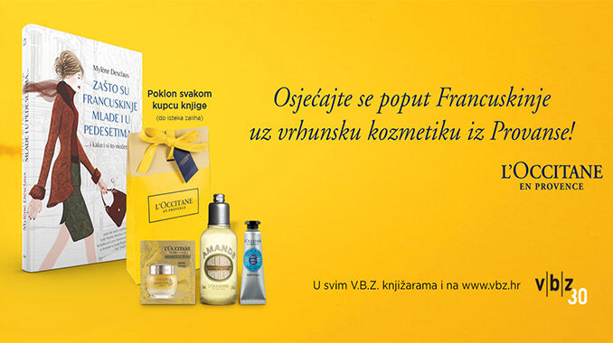 V.B.Z. je upravo objavio novi francuski bestseler, Zašto su Francuskinje mlade i u pedesetima u suradnji s francuskim brendom vrhunske kozmetike L’Occitaneom. U ovoj duhovitoj i uzbudljivoj knjizi francuska publicistica i poslovna žena Mylène Desclaux nježno i iskreno govori o tome što se promijenilo (ili ostalo isto) kad je napunila pedeset godina. Govori i o tome kako je ona sama, ali i njezina okolina, prihvatila tu činjenicu. Do pedesete godine žene se u najvećoj mjeri bave karijerom i/ili obitelji. Sada je vrijeme da se pedesetogodišnjakinje posvete sebi i otkriju novu energiju. Vrijeme je za renesansu, za nježno reprogramiranje, za obnavljanje. Britak humor i već poslovični francuski šarm ono su čime autorica uzima maksimum od srednje dobi. U ovoj knjizi Desclaux daje savjete o ljubavnim i prijateljskim odnosima, o seksu, modi, dejtovima, njezi kože, prijateljstvima, djeci, ljepoti i o svemu onome što Francuskinje čini jedinstvenima. Iskoristite svoje pedesete – na pariški način Knjiga Zašto su Francuskinje mlade i u pedesetima poučit će vas kako uživati u jednostavnim stvarima i iskoristiti svoje pedesete – na pariški način. Za mladolik izgled kože i božanstven osjećaj njege na francuski način, pobrinut će se L’Occitane, raskošnim poklonom za prvih 500 kupaca knjige. Preostaje jednostavno opustiti se uz knjigu te uz mirise i teksture francuske kozmetike – baš poput prave Francuskinje!