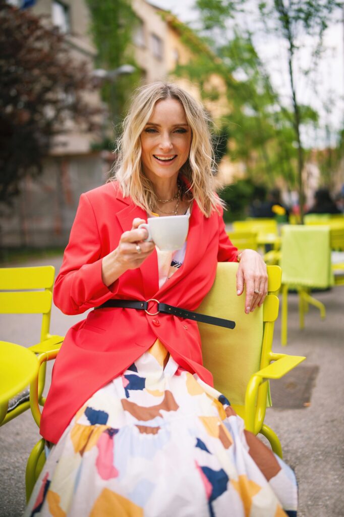Subota je dan za opuštanje i odmor od radnih obaveza, a proljetno prijepodne na kavi u gradu Mara provodi u ležernom, ali stylish looku. Kombinacijom dominira jarko crveni blejzer oversized kroja koji je Mara “obuzdala” remenom koji je istaknuo struk.