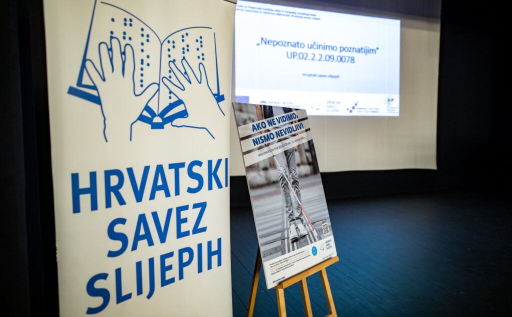 S početkom u 11 sati održala se press konferencija u kazalištu Vidra, gdje se medijima obratio predsjednik Hrvatskog saveza slijepih g. Vojin Perić i izvršna direktorica gđa. Andreja Veljača.