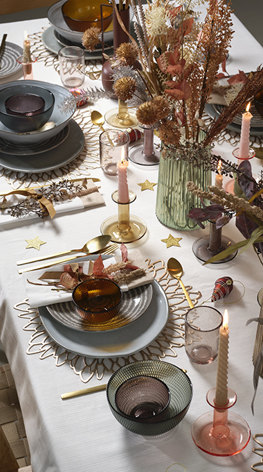 Budući da je božićni stol tako važan element u priči o Božiću, JYSK je pripremio keramičke predmete i posebne ukrase za stol. Zlatni pladanj, pometači ili pribor za jelo u kombinaciji s par grančica ili češera na salvetama dati će stolu potpuno drugu dimenziju a stolice s presvlakom u obliku soba pretvorit će božićni stol u mjesto puno čarolije.