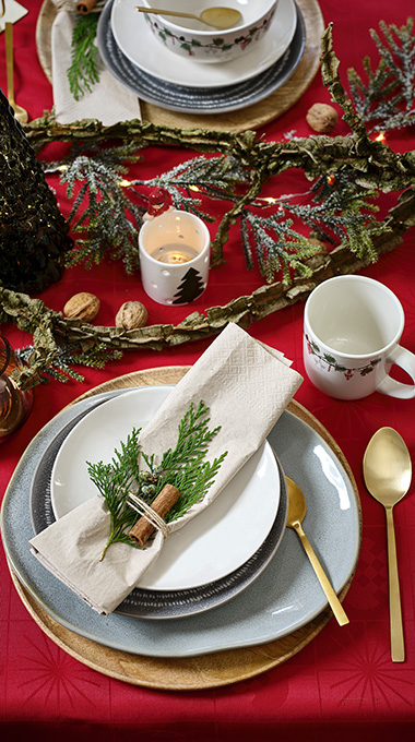 Tradicionalni Božić ove je godine glavni izvor inspiracije. Prevladava crvena boja u svim nijansama koju možemo pronaći na jastučićima, stolnjacima, popularnim patuljcima, raznim ukrasima i keramičkim dekoracijama. Njima se dodaju predmeti s printom ili specifičnim blagdanskim dezenima poput jelovih grana, češera, jelki, zvjezdica i pahuljica.