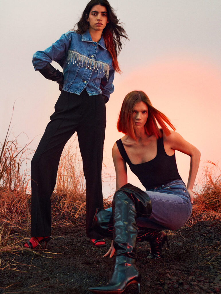 Suprotnost blagom i opuštajućem, obiteljskom scenariju skriva se u Night Out koja sadrži najviše party lookova u kolekciji. Meka pletenina u kontrastu je sa sjajnim šljokičastim materijalima, a međuigru svjetla i tekstura nadopunjuju moderni i raskošni šahovski te cik-cak uzorci. Tu su i klasična crna odijela kao i košulje ili jakne od lakirane umjetne kože, te šljokičasti topovi, hlače i haljine. Paleta boja odražava duh blagdana pa prevladavaju nijanse tamnocrvene, tamnozelene, srebrne i elegantne crne uz traper ukrašen kristalima.