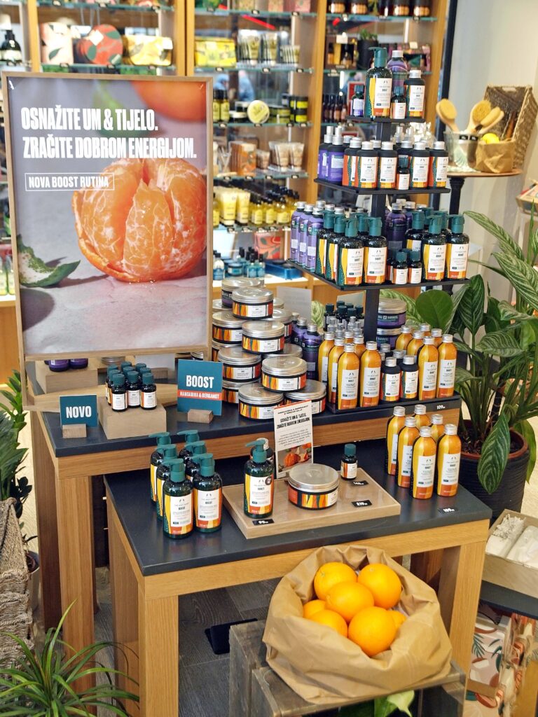 U mirisnoj oazi, The Body Shop trgovini u strogom centru Zagreba (Bogovićeva 5) brojnim novinarima i ljubiteljicama ovog beauty proizvoda predstavljene su sve tri beauty linije kroz interaktivno uživanje u balzamima, uljima, maslacima, maglici za tijelo. Bilo je nevjerojatno, kako su komentirali svi okupljeni, osjetiti moć opuštanja nakon napornog radnog dana.