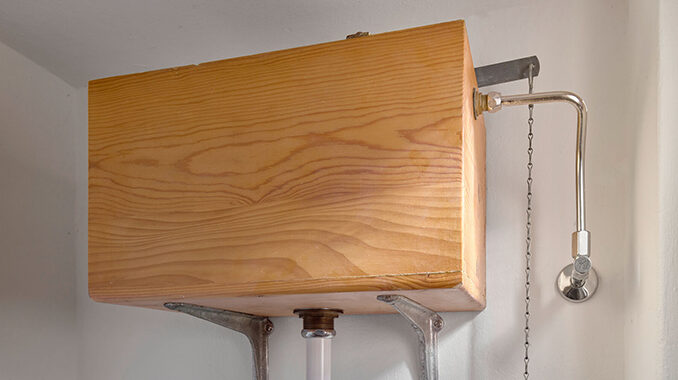 Phoenix – originalni drveni vodokotlić iz Geberita još uvijek savjesno obavlja svoj posao u kupaonici kuće u Winterthuru u Švicarskoj.