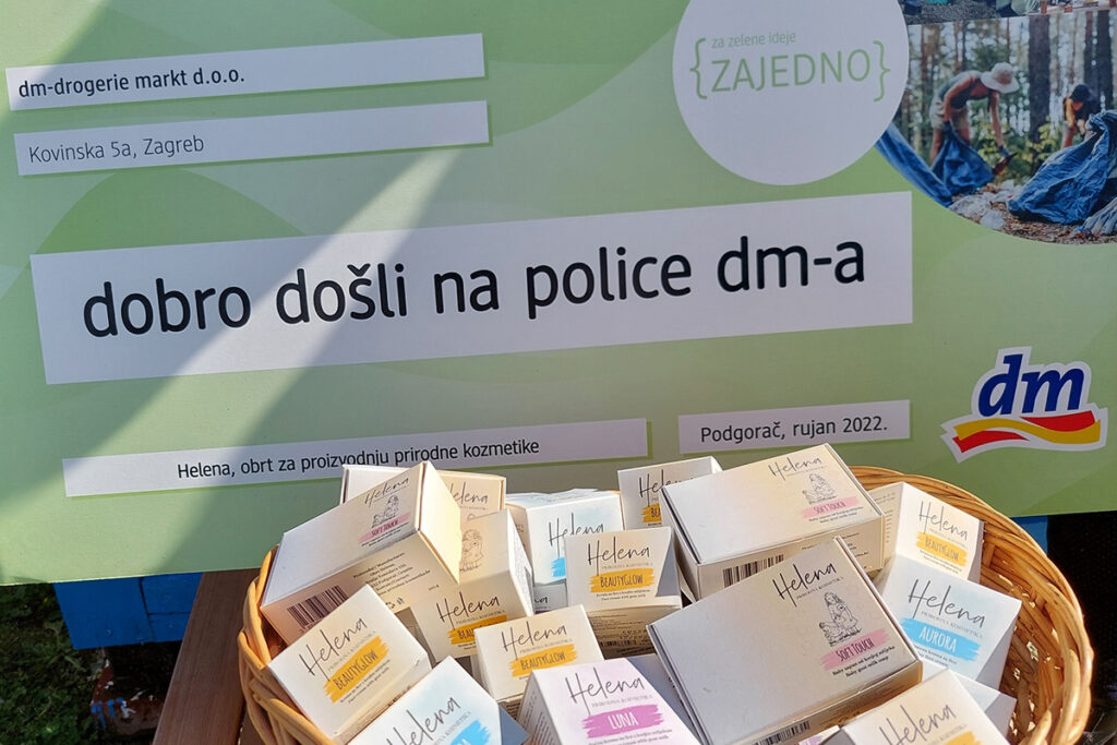 U ponudi dm-a od studenog 2022. godine bit će dostupni proizvodi brenda Prirodna kozmetika Helena iz Podgorača koje je dm odabrao u natječaju {ZAJEDNO} za zelene ideje. Kupci će moći birati među šest proizvoda brenda koji je razvila Helena Nađ, a uz sapun i kreme za lice, u planu je uvrštavanje još najmanje četiri proizvoda.