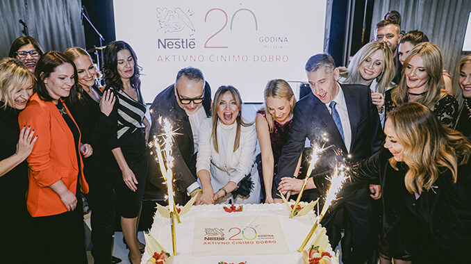 Nestlé, najveća prehrambena kompanija na svijetu, obilježava 20 godina odgovornog i uspješnog poslovanja u Hrvatskoj, s posebnim naglaskom na primjenu održivih praksi u svakom dijelu svojeg poslovanja – od ljudi do okoliša. Uz zaposlenike, poslovne partnere i suradnike, proslavu ovog jubileja u hotelu Zonar, uveličali su veleposlanik Švicarske u Hrvatskoj NJ.E. gospodin Urs Hammer te gospođa Ștefania Carmen Florea, otpravnica poslova Veleposlanstva Rumunjske u Hrvatskoj.