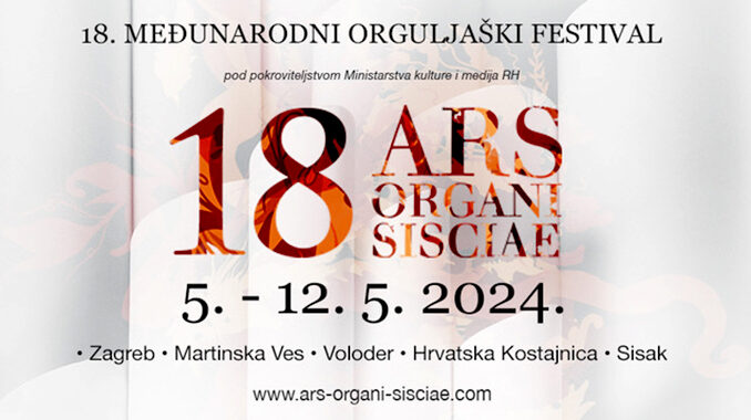 Ovogodišnje izdanje Međunarodnog orguljaškog festivala Ars Organi Sisciae održat će se od 5. do 12. svibnja u Zagrebu, Martinskoj Vesi, Voloderu, Hrvatskoj Kostajnici i u Sisku. Punoljetni festival prvi puta gostuje u Zagrebu koncertom otvorenja u Župnoj crkvi sv. Marka Evanđelista 5. svibnja u 19.30 sati uz sjajni Oratorijski zbor Cantores sancti Marci pod ravnanjem Jurice Petra Petrača i uz orguljaša Pavla Mašića.