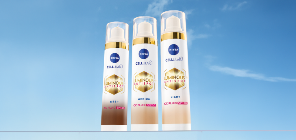 Velik broj žena bori se s manjkom samopouzdanja zbog neujednačene boje kože i tamnih mrlja na svome licu te skrivaju svoju prirodnu ljepotu pod slojevima teške šminke. NIVEA predstavlja svoje najnovije rješenje, Luminous630® 3-u-1 CC fluid, koji kombinira stručnu njegu kože i uljepšavanje te prekriva i smanjuje sve vrste tamnih mrlja i istovremeno štiti od tamnih mrlja izazvanih suncem. Formula s hijaluronskom kiselinom aktivira stanice, dubinski hidratizira i hrani kožu, čineći NIVEA Luminous630® 3-u-1 CC fluid neizostavnim dijelom dnevne njege kože.