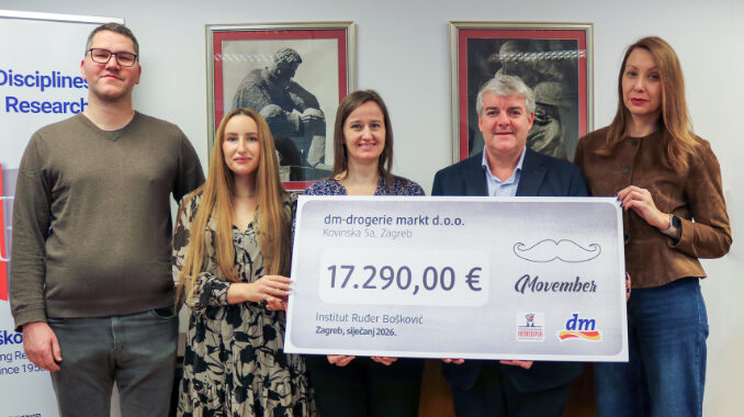 U utorak 13. siječnja, dm je Institutu Ruđer Bošković donirao 17.290 eura za istraživački projekt čiji je cilj razvoj novih terapija koje će rak prostate učiniti ranjivijim i manje opasnim. Dosad najveća donacija ostvarena je u suradnji s kupcima i Satiričkim kazalištem Kerempuh u desetom izdanju kampanje Movember, kojom dm skreće pozornost na važnost i ulogu prevencije u očuvanju zdravlja.